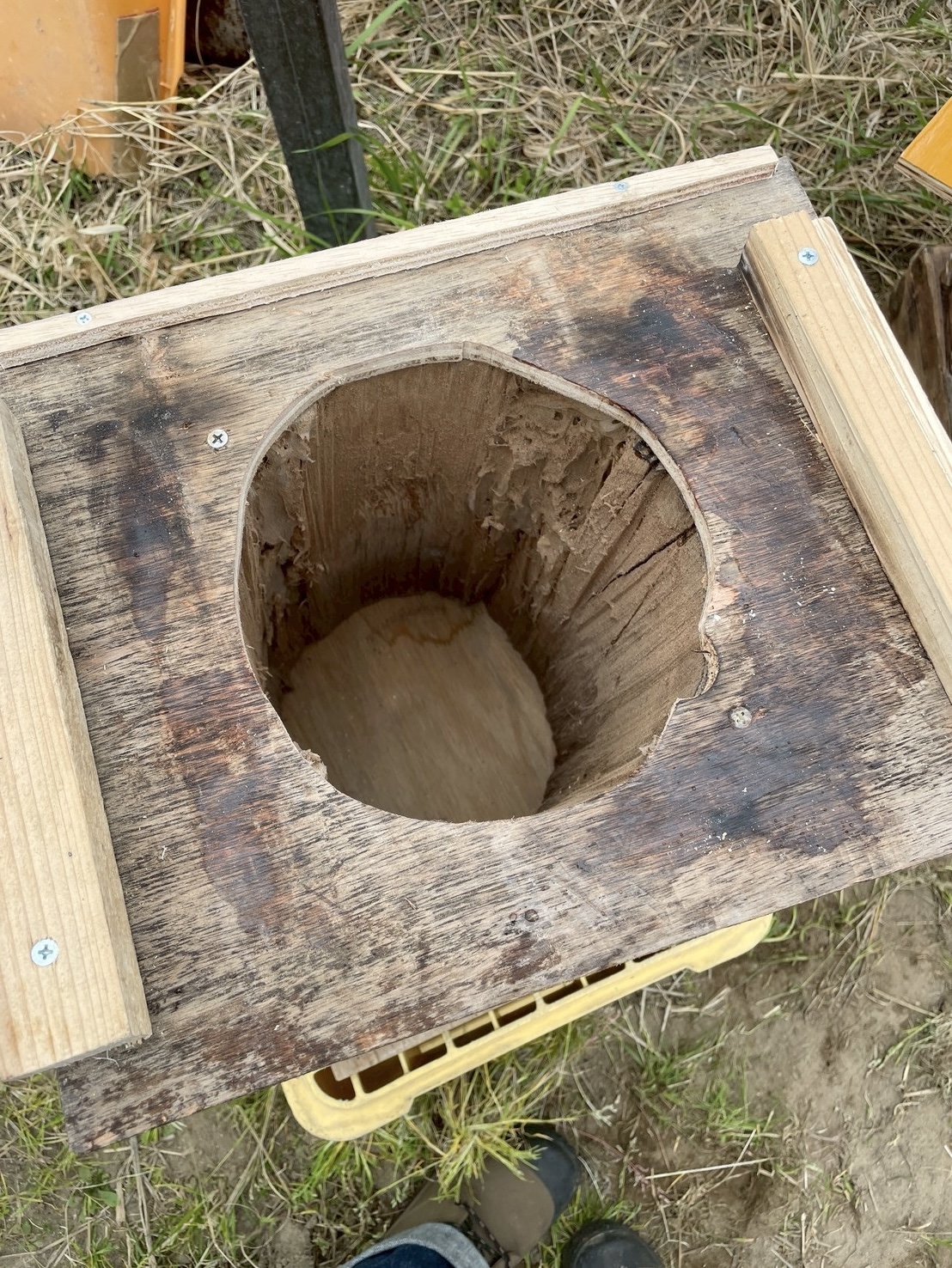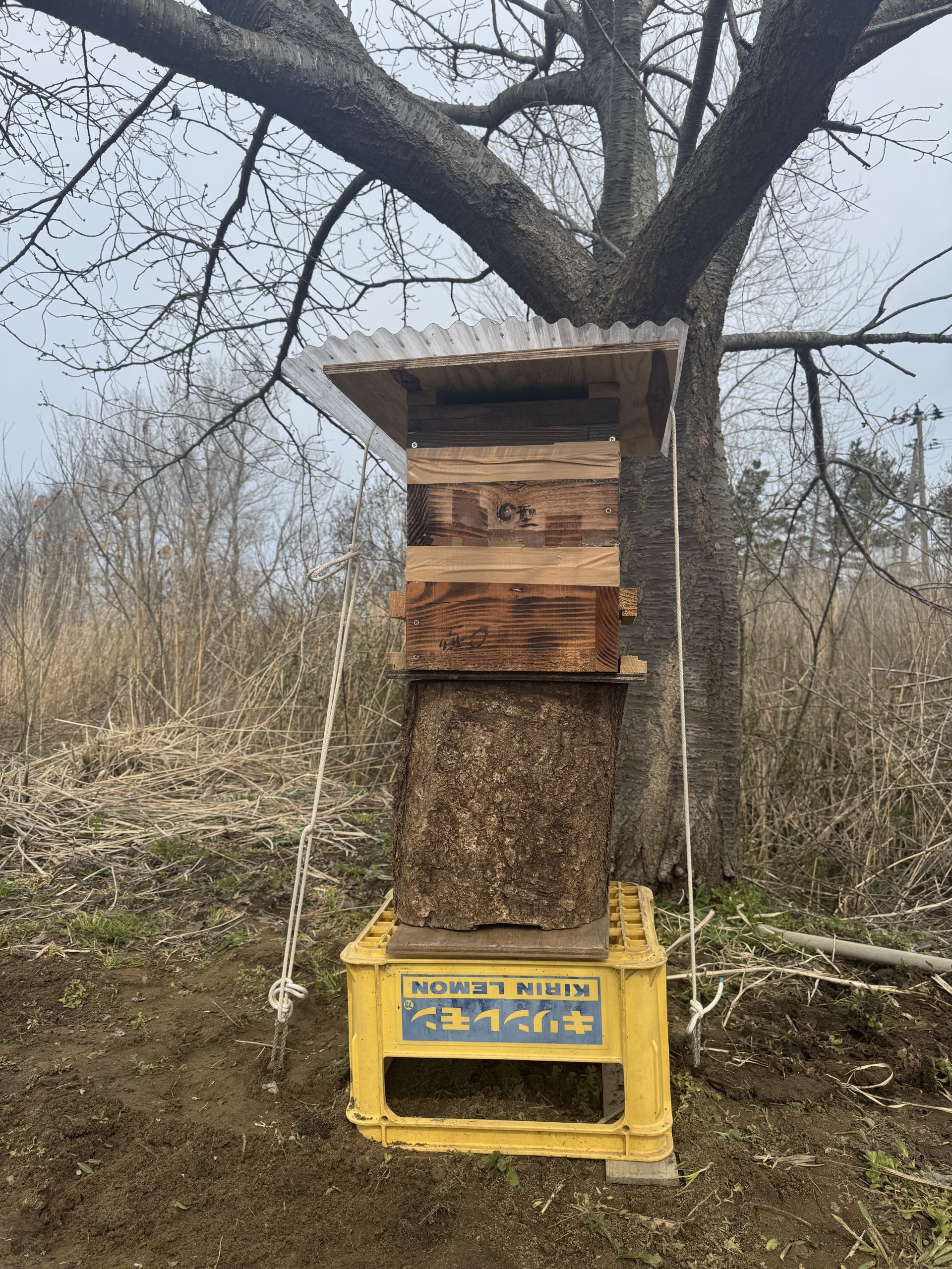 中でも印象的だったのは、くり抜いた丸太に重箱式巣箱を組み合わせた”ハイブリット型“。