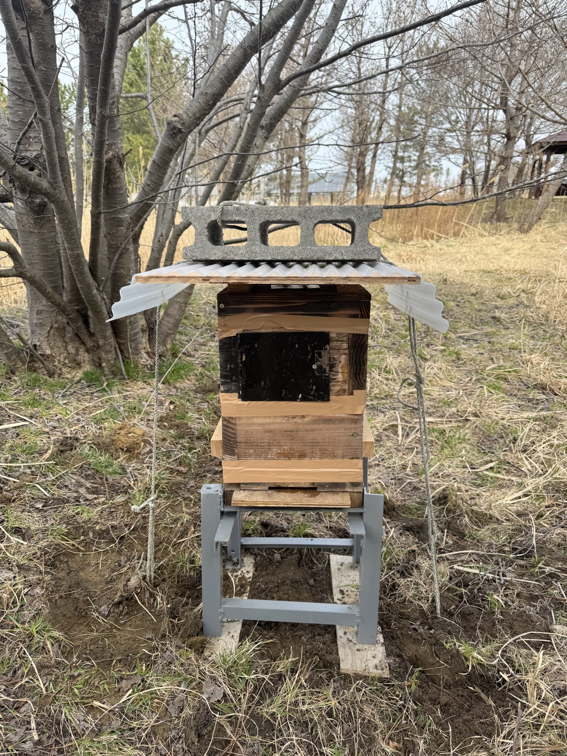 溶接もお得意な中島さんは、巣箱を設置するための専用の土台まで手作りしています!