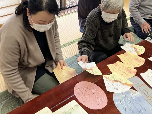 村内で書道を学んでるという話を聞きつけ、健康館で行われている『書道同好会』にお邪魔させていただきました。