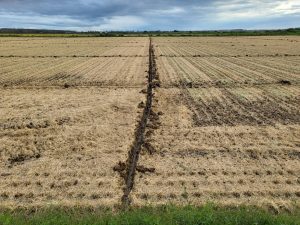 この溝を田んぼにある水の出口に繋げることで、雨などで溜まった表面の水がスムーズに流れ出るようにします。