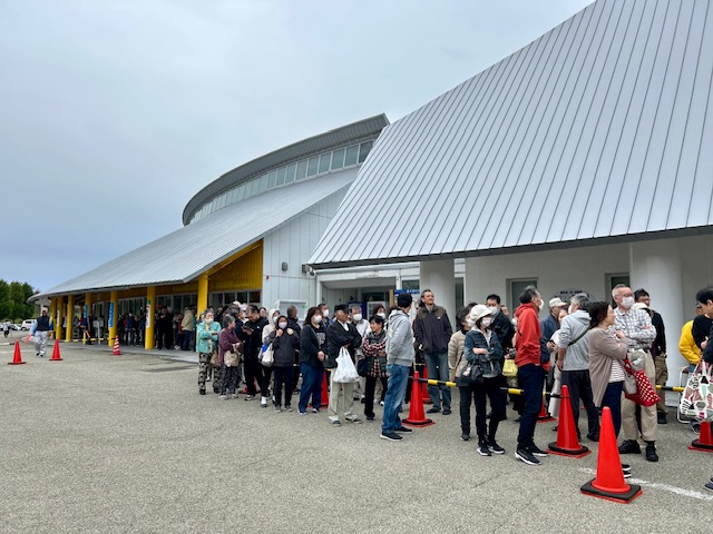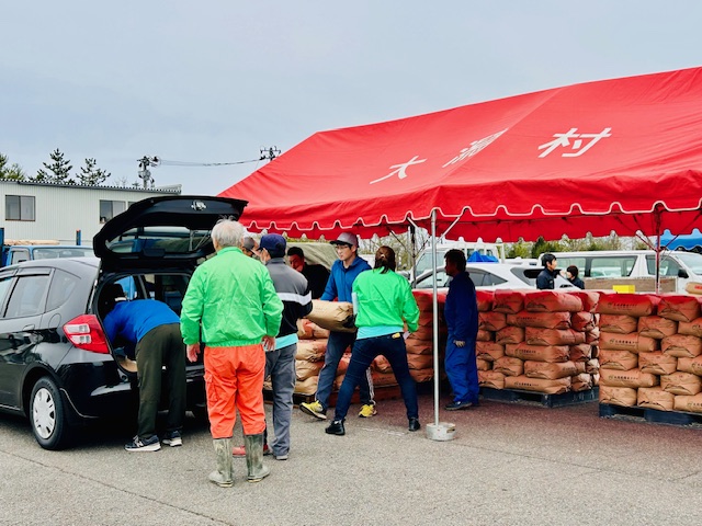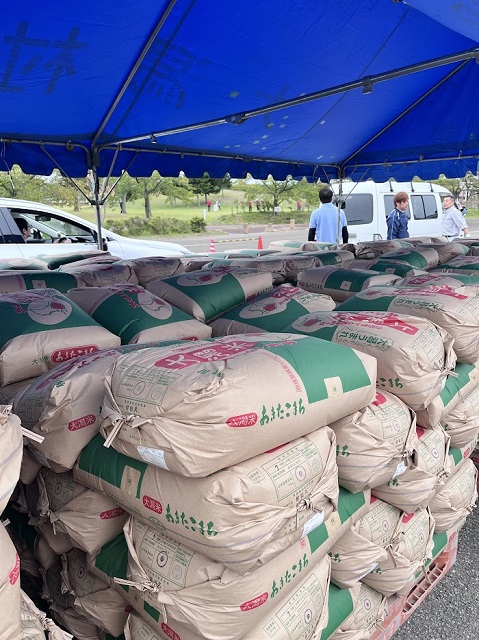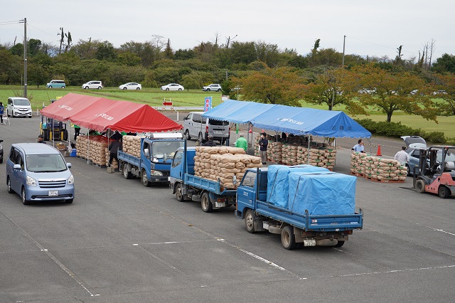 新米が値上がりする中お安く購入出来る絶好の機会に、販売開始時間前からたくさんの車の列が!