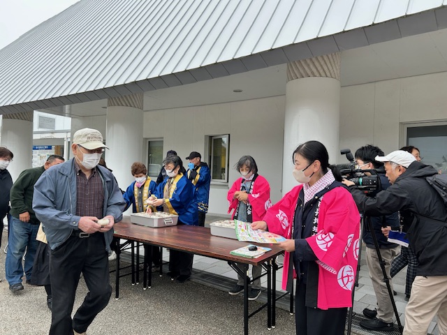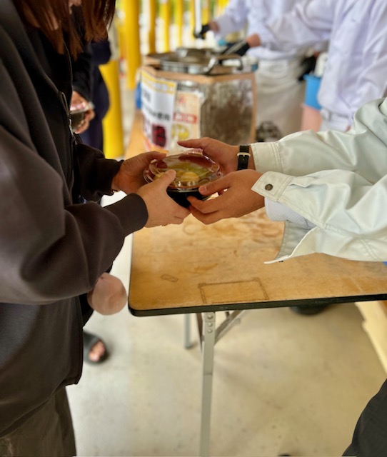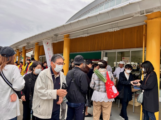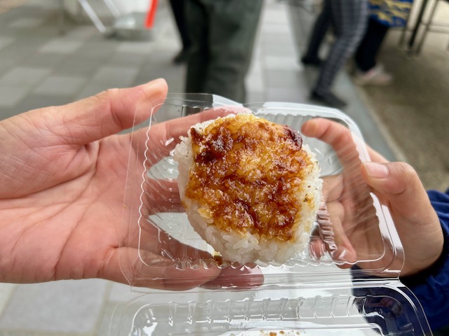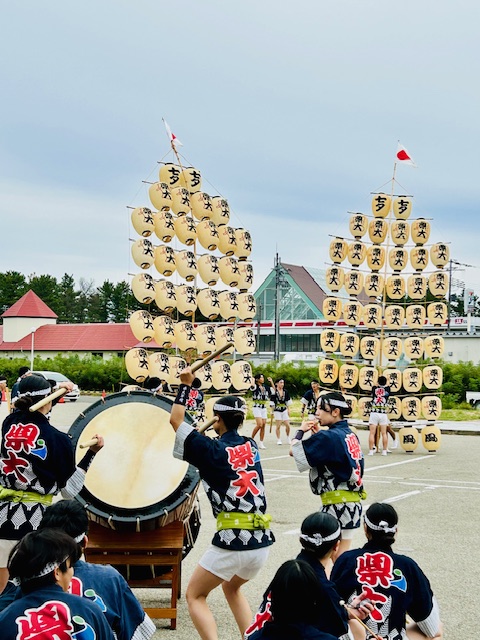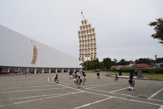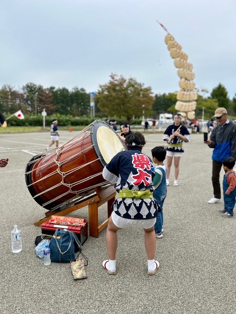 干拓博物館前では、秋田県立大学竿燈会による演技と、大潟村産新米の有機味噌おにぎり無料配布が行われました!