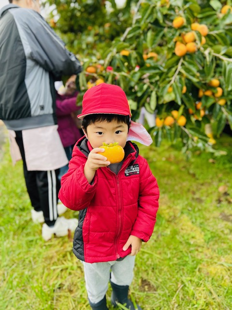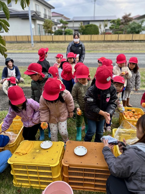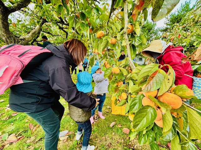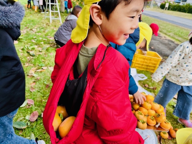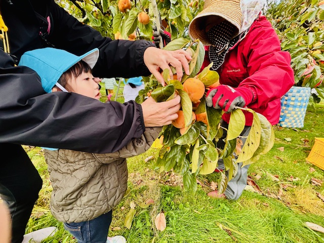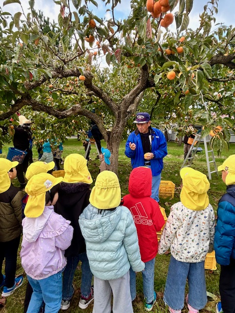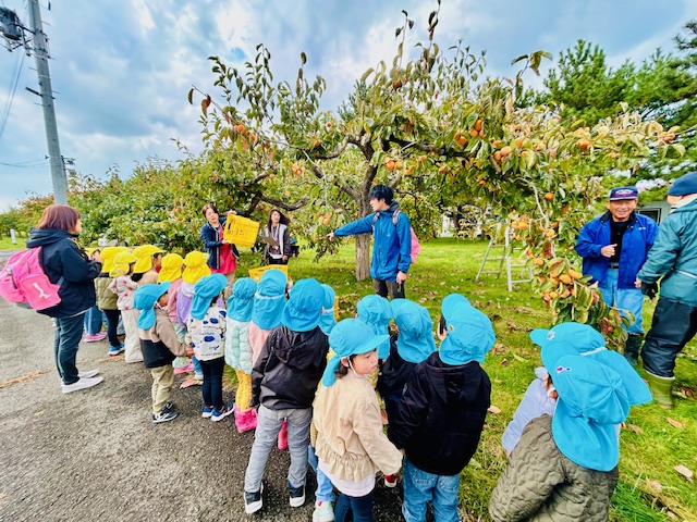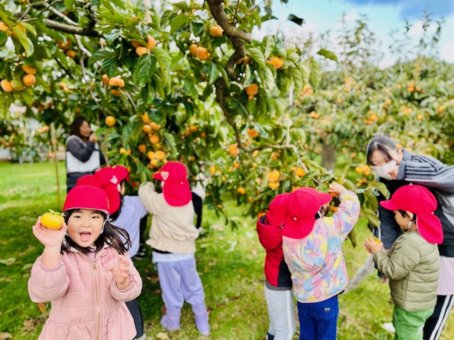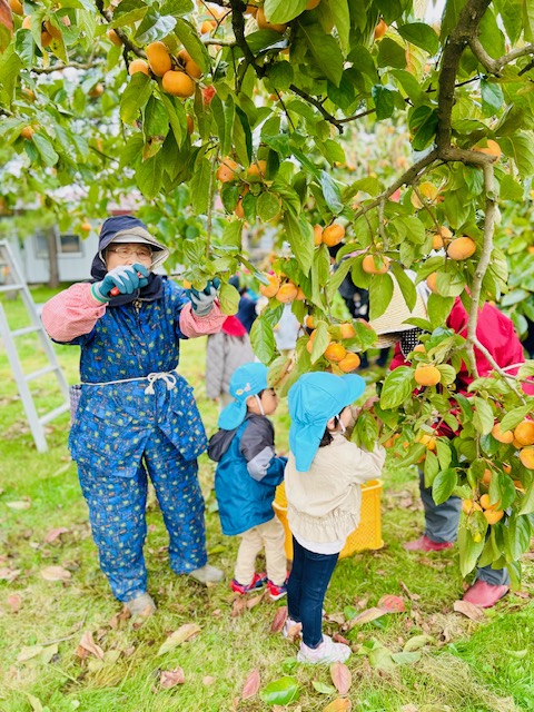 大潟こども園3・4・5歳児さんたちの「柿もぎ」が行われました^^!
