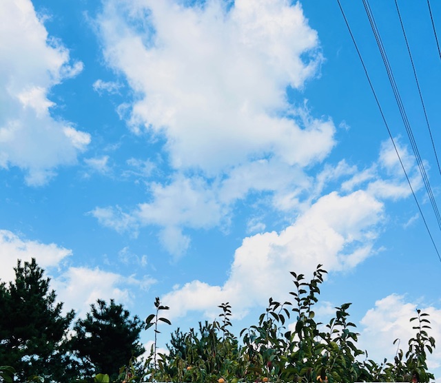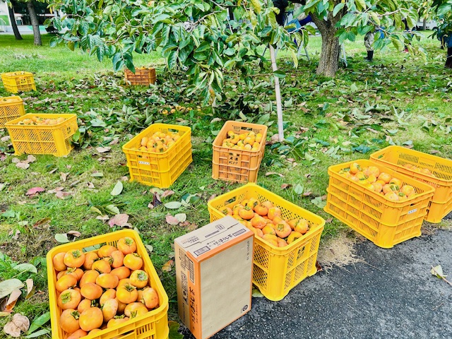 柿で満杯のコンテナがたくさんになった頃には、ぐずついていた空模様が青空になっていました☀!