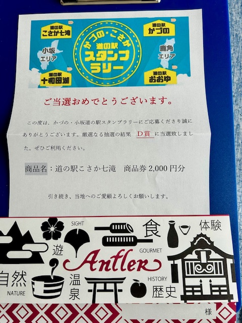 参加したスタンプラリーの一つ、「かづの・こさか道の駅スタンプラリー」で商品券が当たりました~\(^O^)/♪
