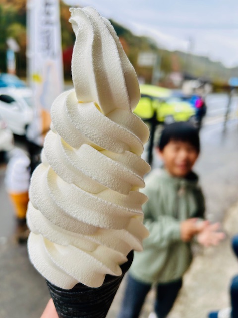 食後に「特盛!生乳ソフトクリーム」をペロリ♪ お腹いっぱい大満足(^^)v