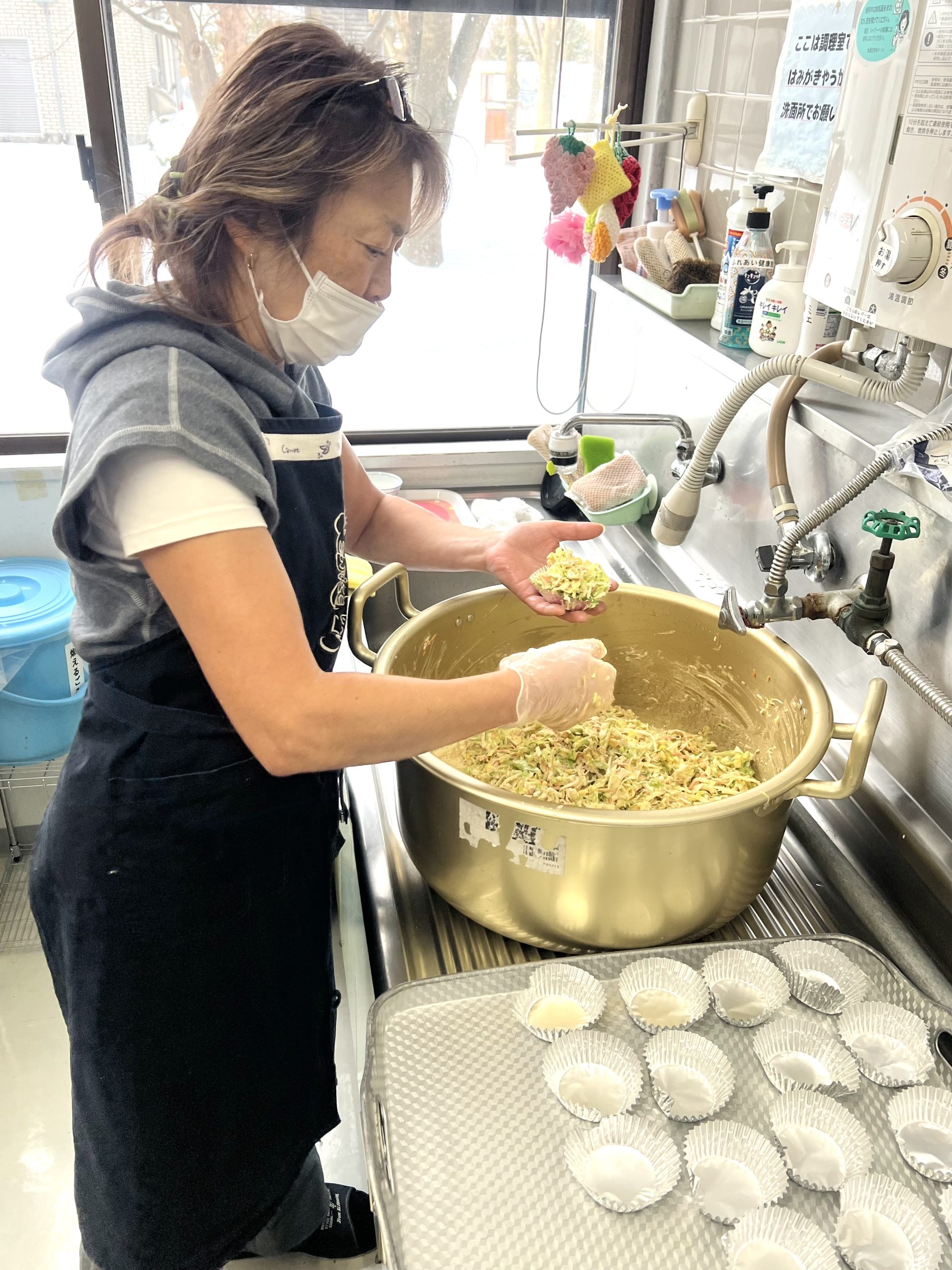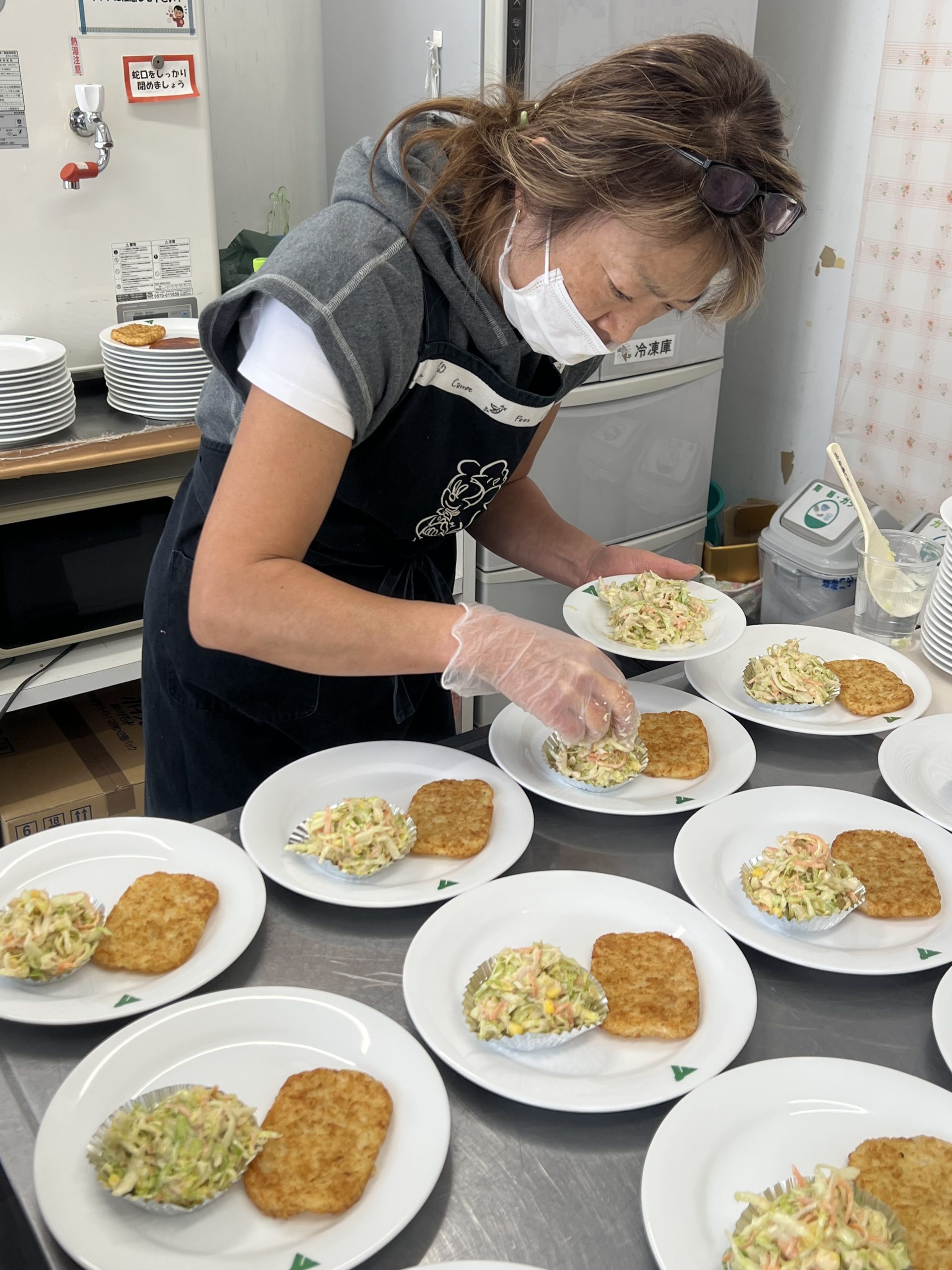 「本当は温かいうちに食べさせてあげたいんだけどねぇ」と嘆く調理担当者さん。